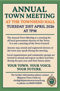 Tuesday 21st April 2026 - 7pm at The Townsend Hall in Shipston The Annual Town Meeting is a meeting for all local Government electors of...