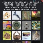 Ceramics, paintings, journals, textiles, willow, jewellery, felting, sculpture, 3D art, mixed media, stone mason, wood turning and upcycling
