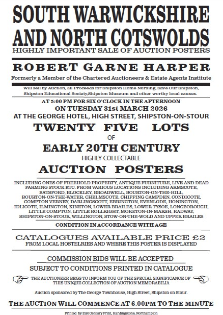 South Warwickshire and North Cotswolds Highly Important Sale of Auction Posters by Robert Garne Harper.