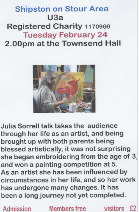 Join Shipston on Stour’s U3A on Tuesday 24th February, at 2pm at the Townsend Hall.