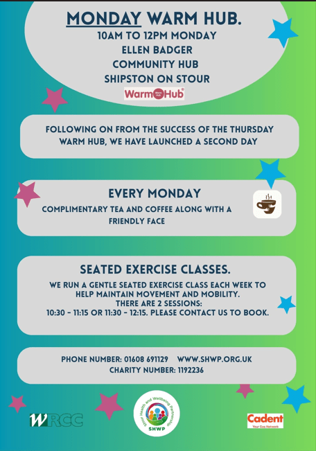 Following on from the success of the Thursday Warm Hub, we have launched a second day. Every Monday, complimentary tea and coffee with a friendly face.