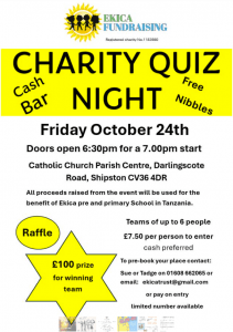Join Ekica fundraising on Friday 24th October, to raise funds for Ekica pre and primary school in Tanzania. Doors open 6.30pm for a 7pm start....